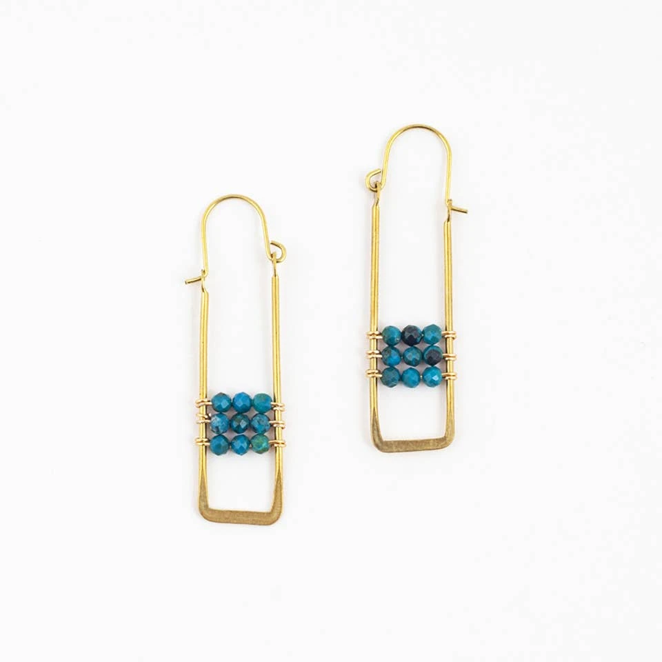 The Framed Chrysocolla Earrings are handmade in a fair trade workshop in Guatemala.