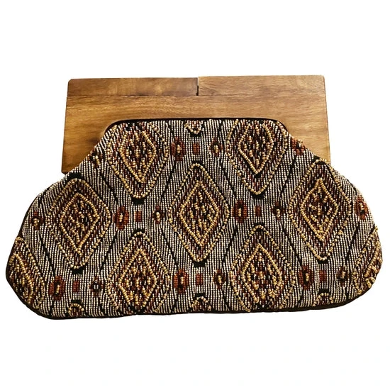 Clutch with Intricate Beadwork and Wooden Handle