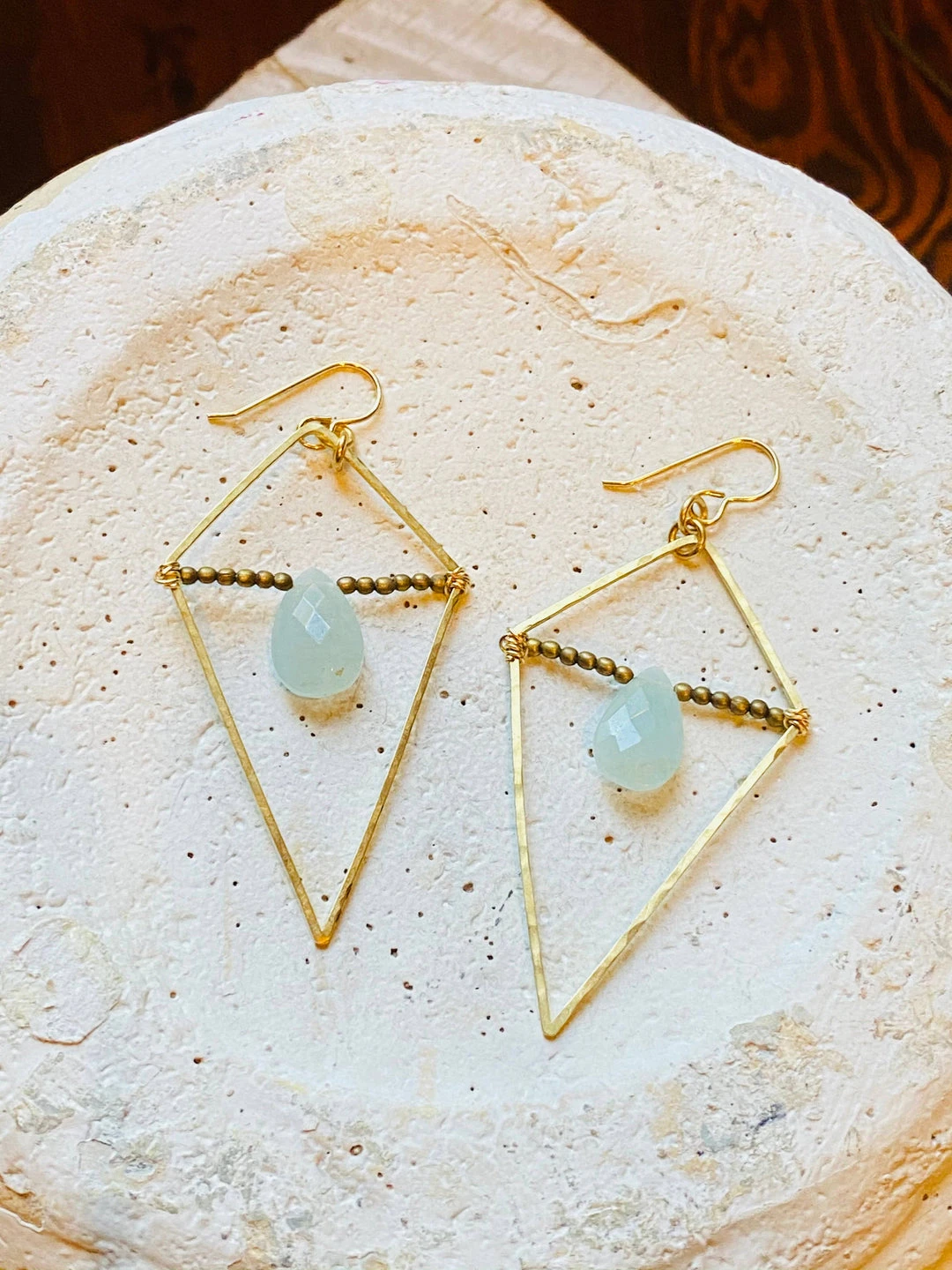 The aquamarine, teardrop gemstone adds a pop of sutle color.