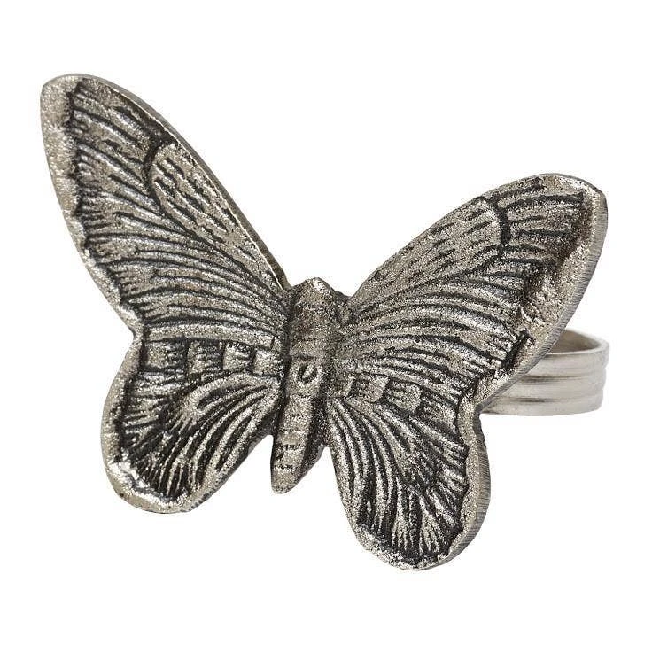 Brass Butterfly Napkin Ring with Antique Silver Finish.