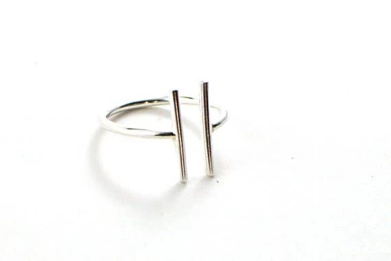 Modern and minimalist double bars ring. This is parallel bars ring and a bit adjustable. Look great as a simple statement ring on any finger or a thumb ring. Available in both 14k gold filled and solid sterling silver.