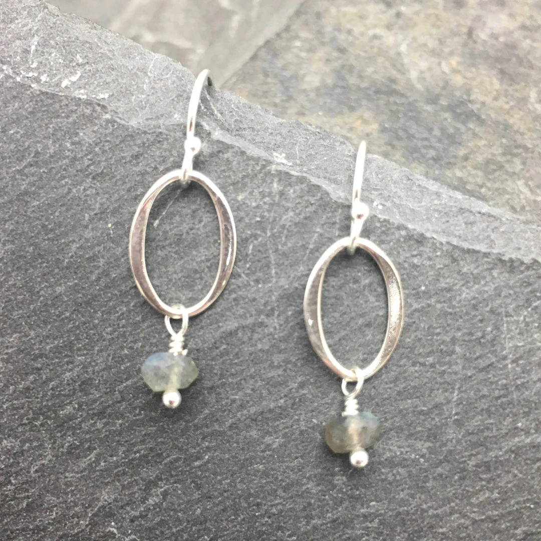 Sterling Silver oval with labradorite earring.