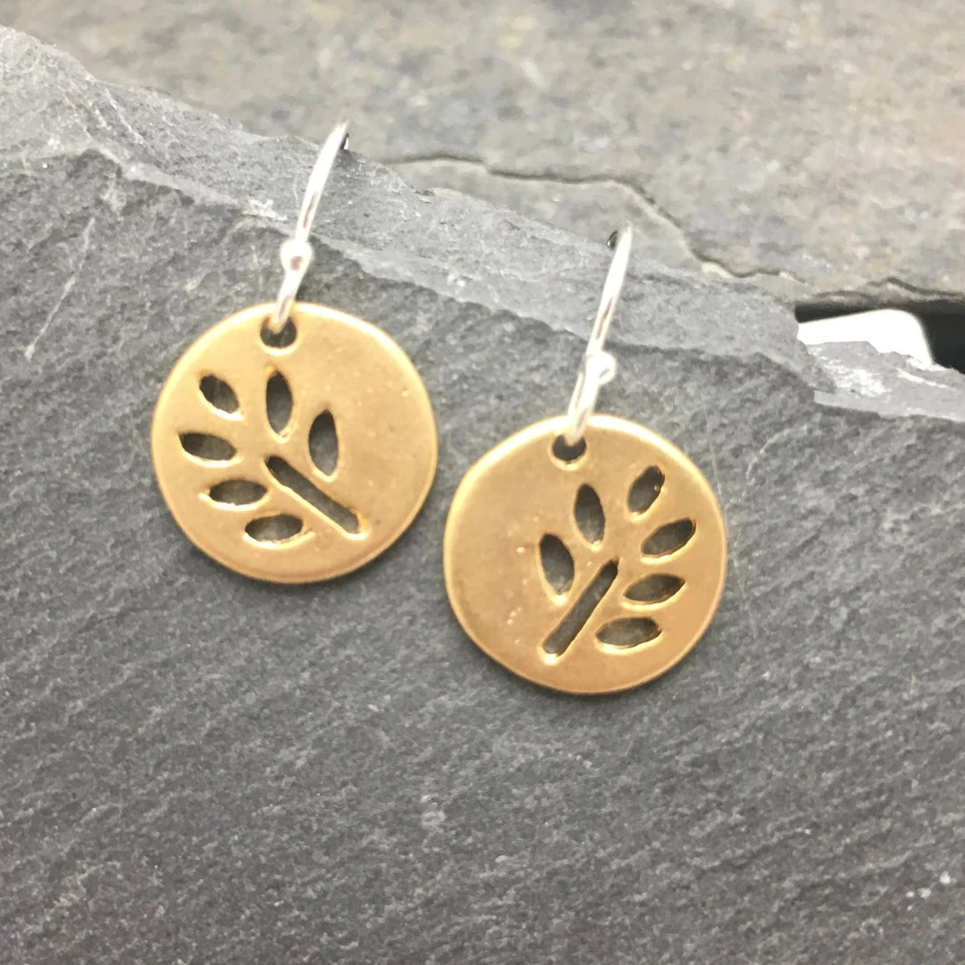 Be the first to review “Elizabeth Jewelry Gold Small Matt Finish Leaf Disk Earrings” Cancel reply
