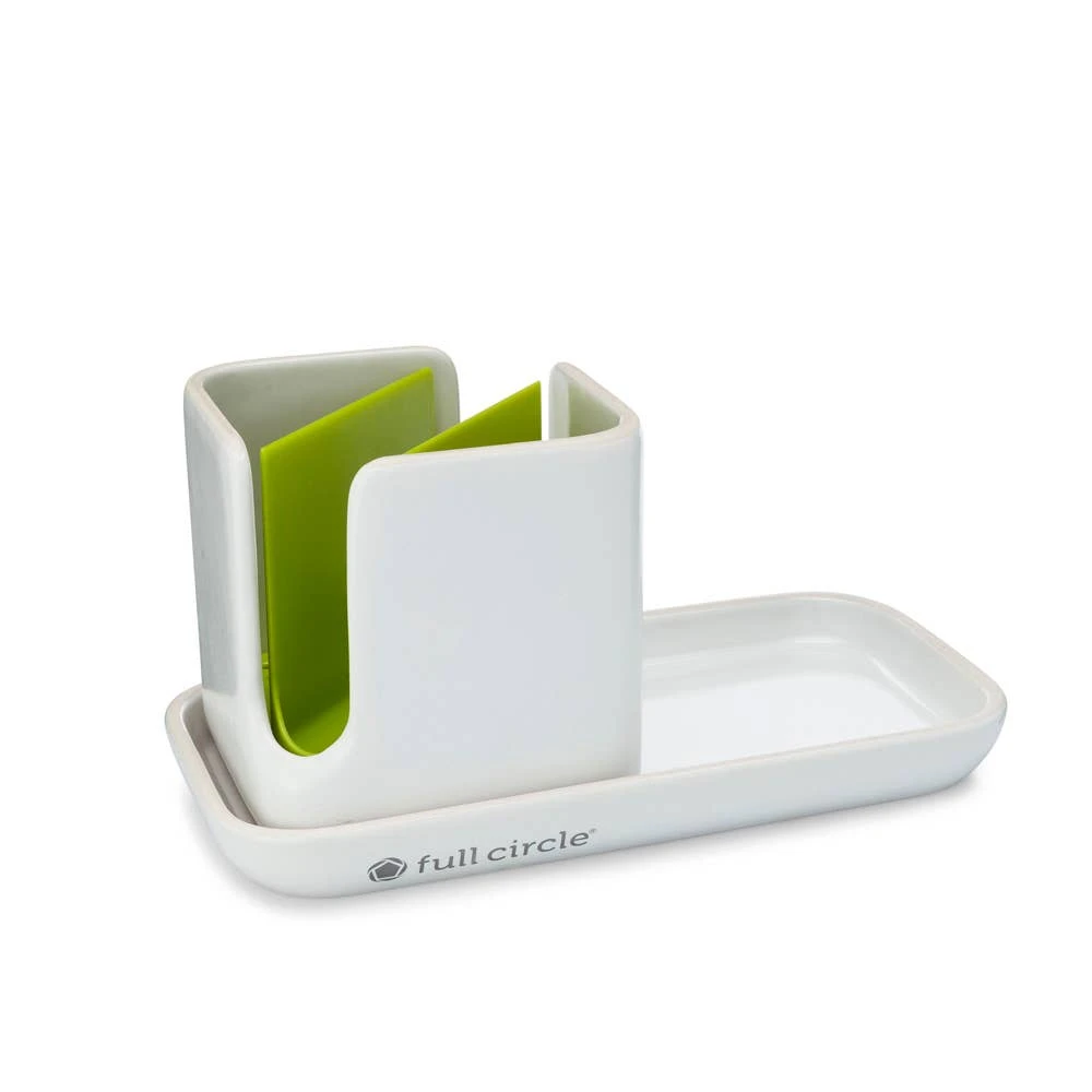 Meet the game-changing, space-saving storage system for your sink and countertops. A streamlined, low profile tray and caddy design make this modular ceramic sink system your go-to for functional, flexible style. Material: Sustainable Ceramic, Recycled Plastic. Dishwasher Safe.