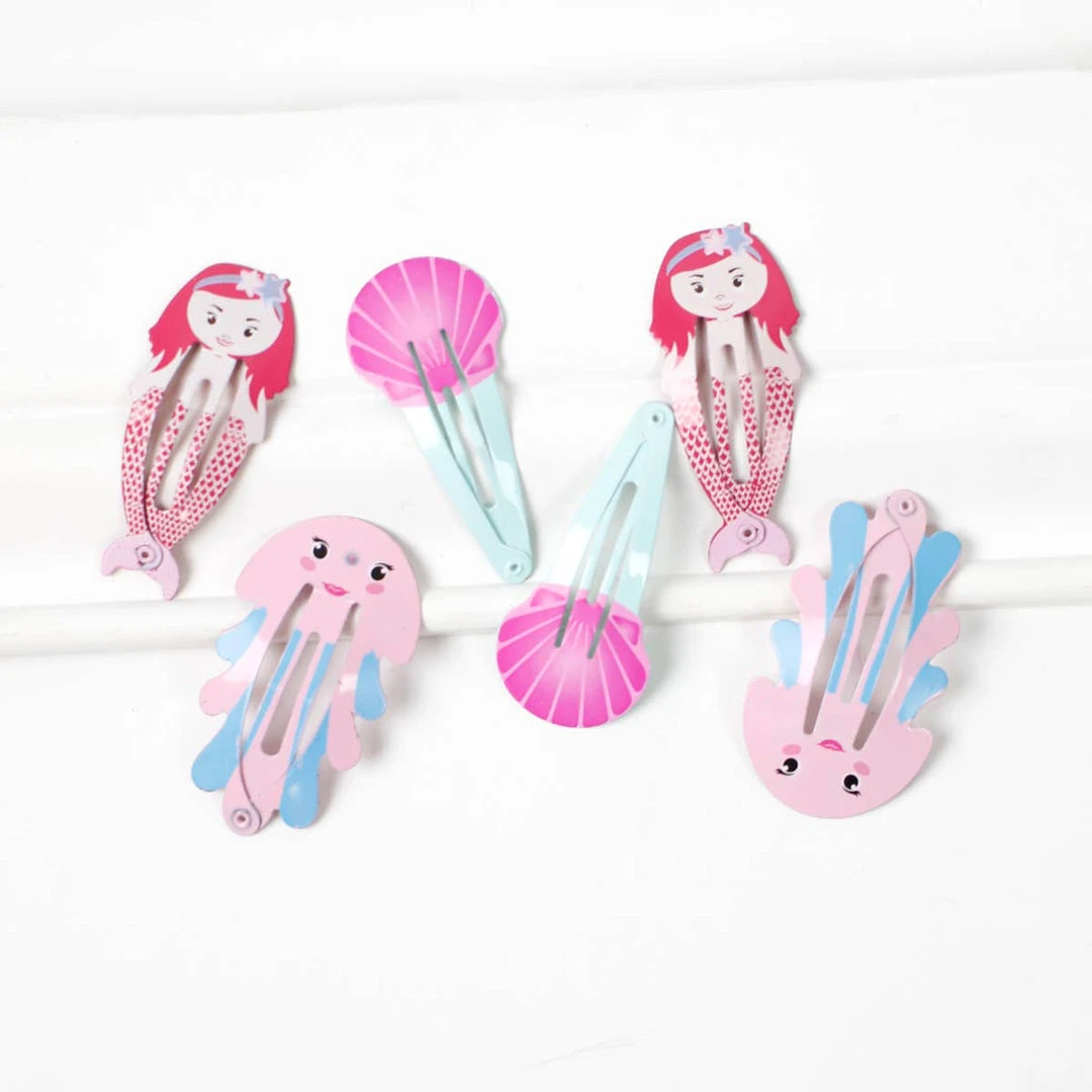Mermaid Love hair Clips include 2 of the following: Mermaid, Squid & Seashell. Adorable to add a little spunk your little ones hair. Celebrate summer with these ocean finds! Adorable pink and teals color, each about 1″. One set is 6 hair clips.