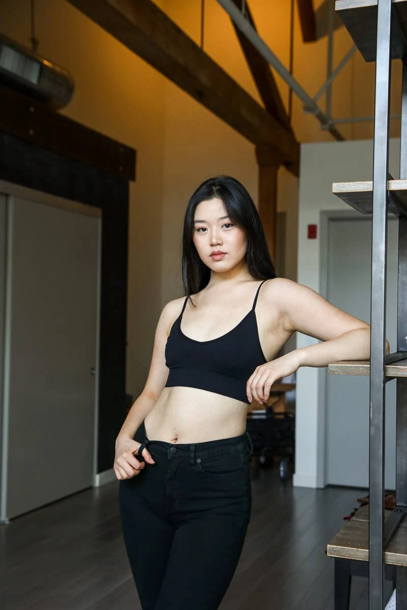 Low Back Seamless Bralette, Heat Stamped Care Label. 92% Nylon 8% Spandex.