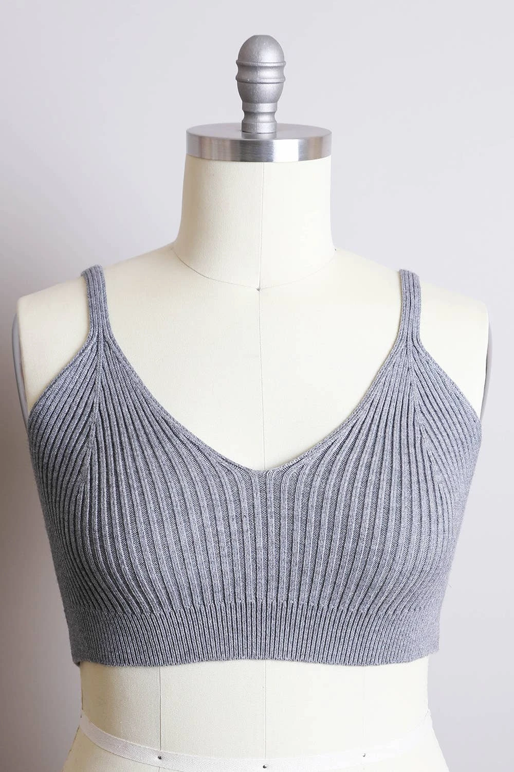 Contour Rib Knit Brami Lounge Top. 70% Nylon 30% Polyester.
