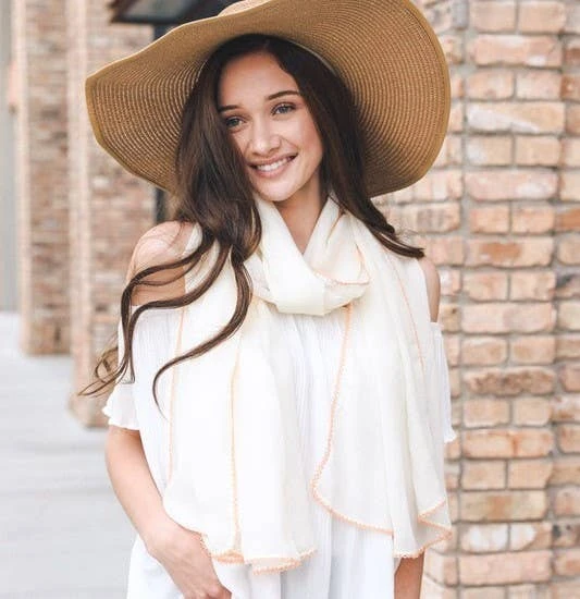 Lightweight Scallop Stitch Trim Scarf Dimensions 71″ x 28″
