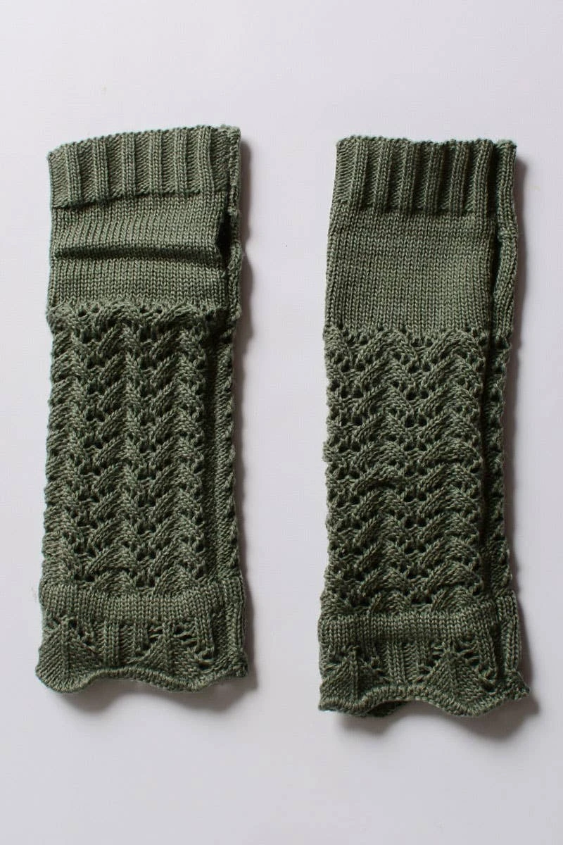 Sage Knitted Arm Warmers. One Size Fits Most, 100% Acrylic.
