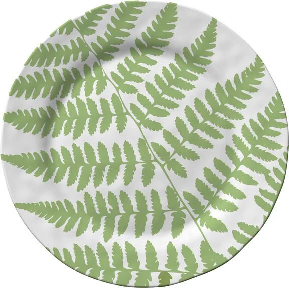 Round 11 inch Melamine Fern Dinner Plate. Dishwasher Safe. BPA Free.