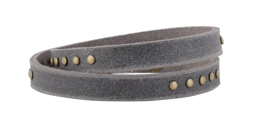 A minimal double wrapped leather bracelet stylized with small copper studs is our ultimate bracelet stackable. The bracelet can also be worn as a choker as well! One of our all time favorite pieces- the perfecct stackable for every day!