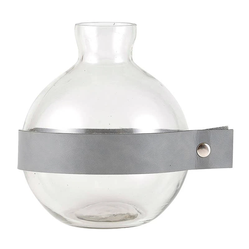Make any flowers stand out in this vase! Simple leather details make it easy to display anywhere in your home.