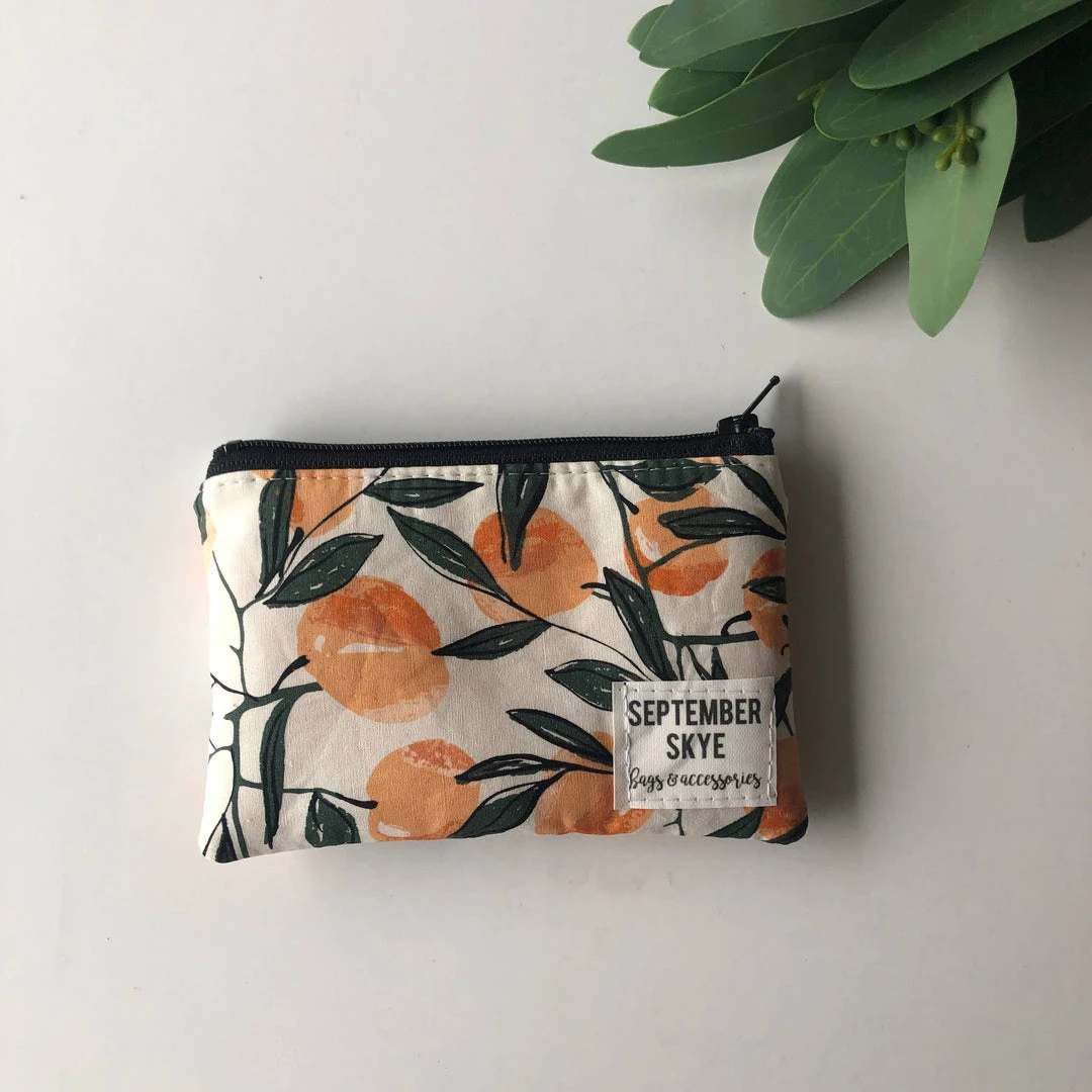 Small zipped pouch that fits essentials like mini hand sanitizers, chapsticks, credit cards, cash, coins, earbuds, etc. Everyone needs to be organized when going out and about!