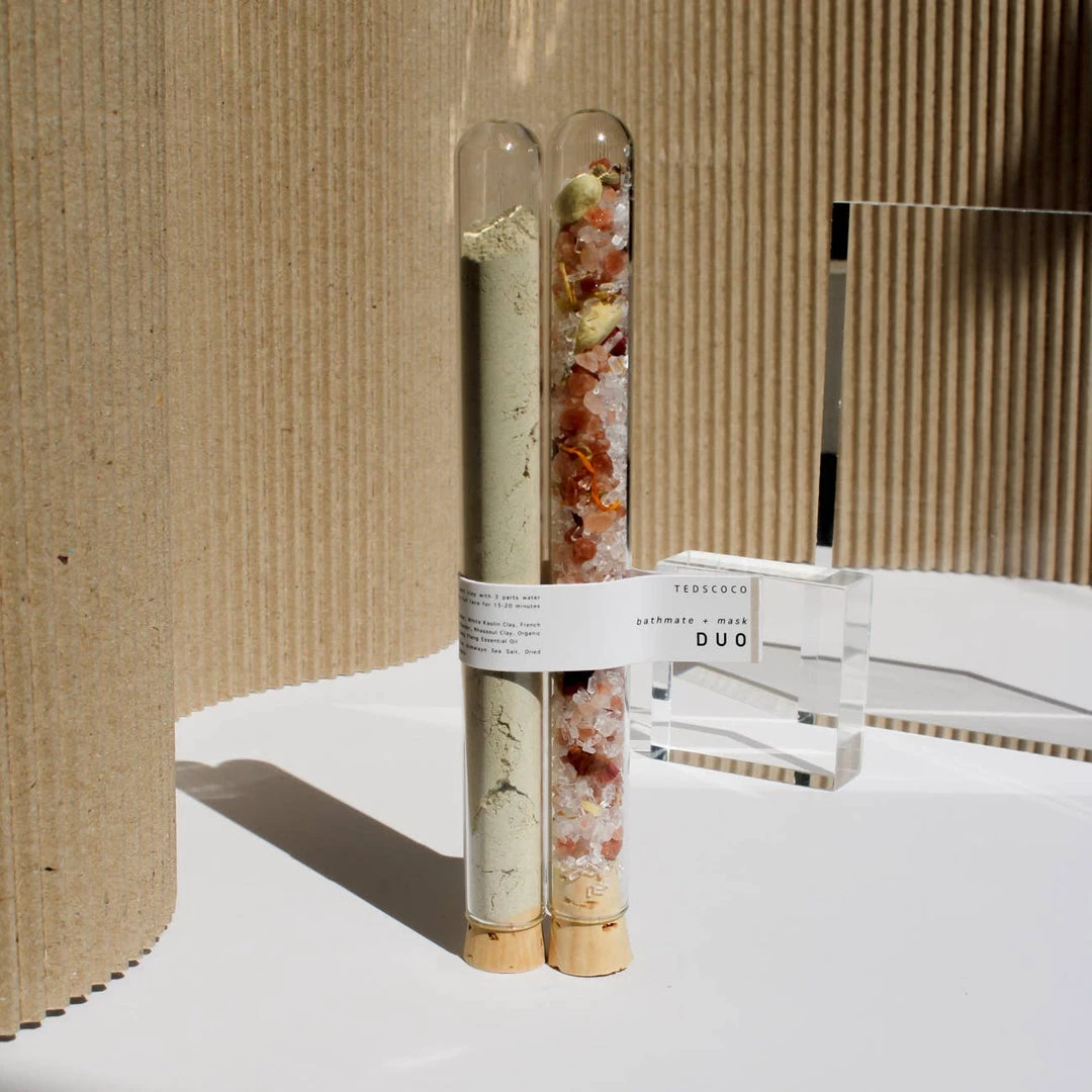 Sample sizes of Clay Mask and Bathmate Blended with 84 trace minerals and crystals, just cuter.