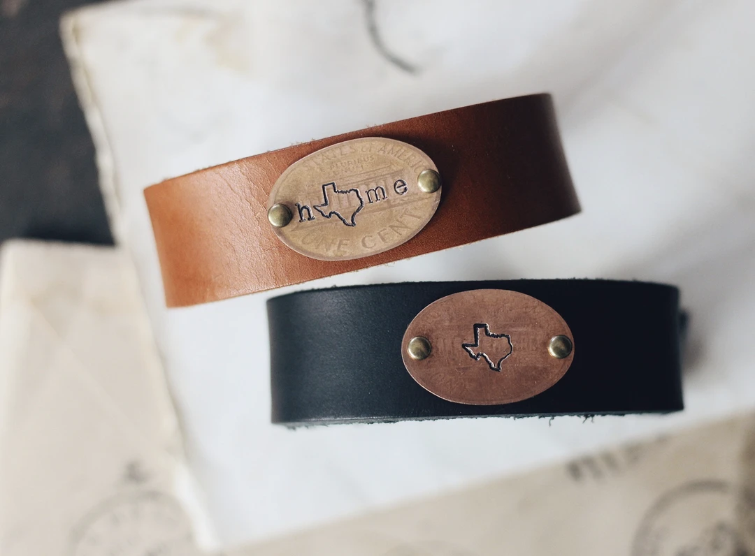 Be the first to review “The Traveling Penny NH Outline State Camel Brown Leather Cuff” Cancel reply