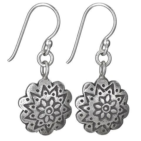 Sterling Silver Stamped Hilltribe Flower Earrings.