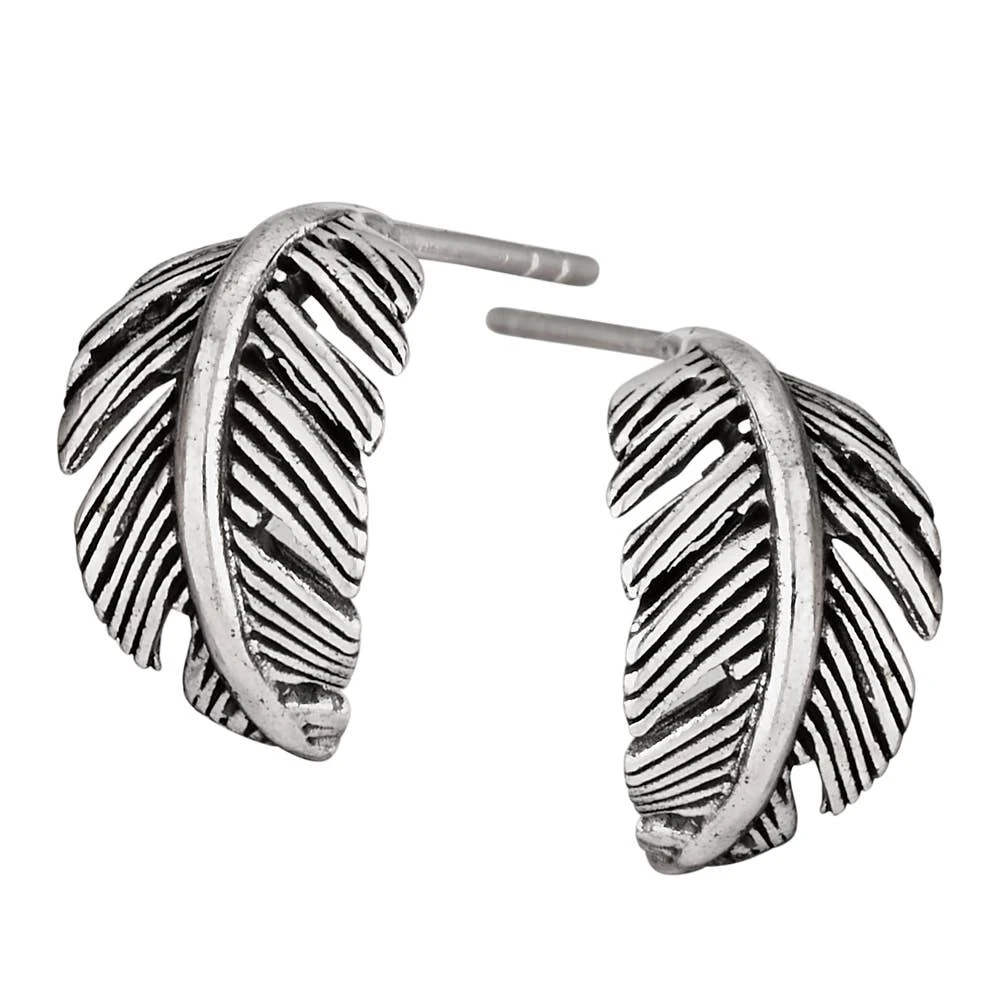 Sterling silver curved feather studs.
