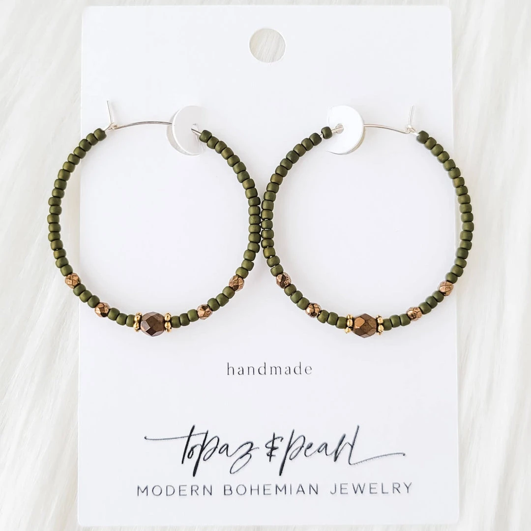 Handmade with sterling silver, Japanese seed beads, and bronze Czech glass beads.