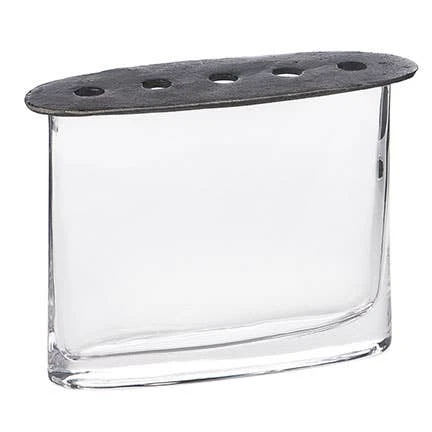 Oval Glass Vase With Cast Iron Lid