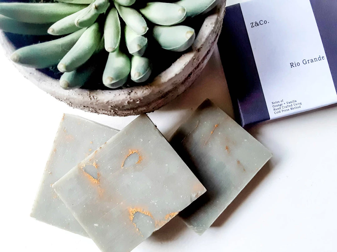 Our Tribute collection is made with nothing but the best oils! Rio Grande has notes of Orange + vanilla All our soaps are made by hand using a cold process method. And because we want your skin to love these soaps with made them with coconut milk. This soap is vegan and palm free!